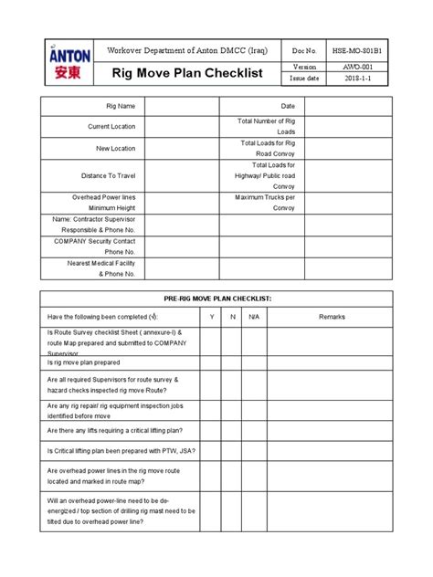 Free PDF Rig Move Plan Checklist iBooks ManyBooks
